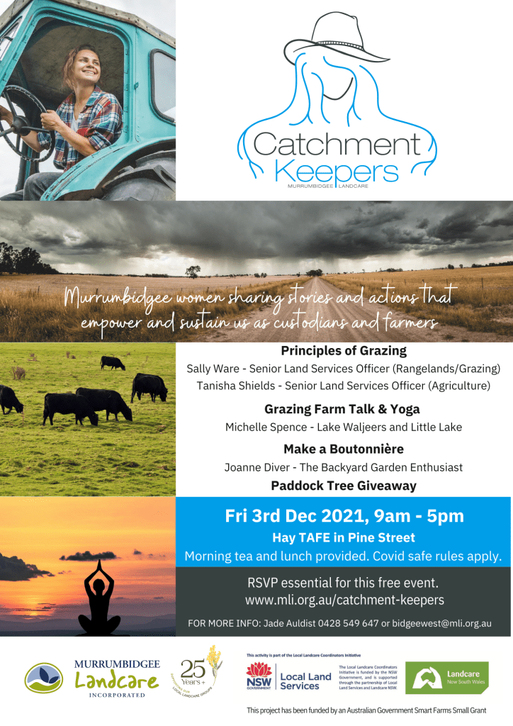 Murrumbidgee Landcare are conducting a series workshops designed by and for women farmers and farm partners. The workshops are being conducted in eight locations across our region, Including Hay.