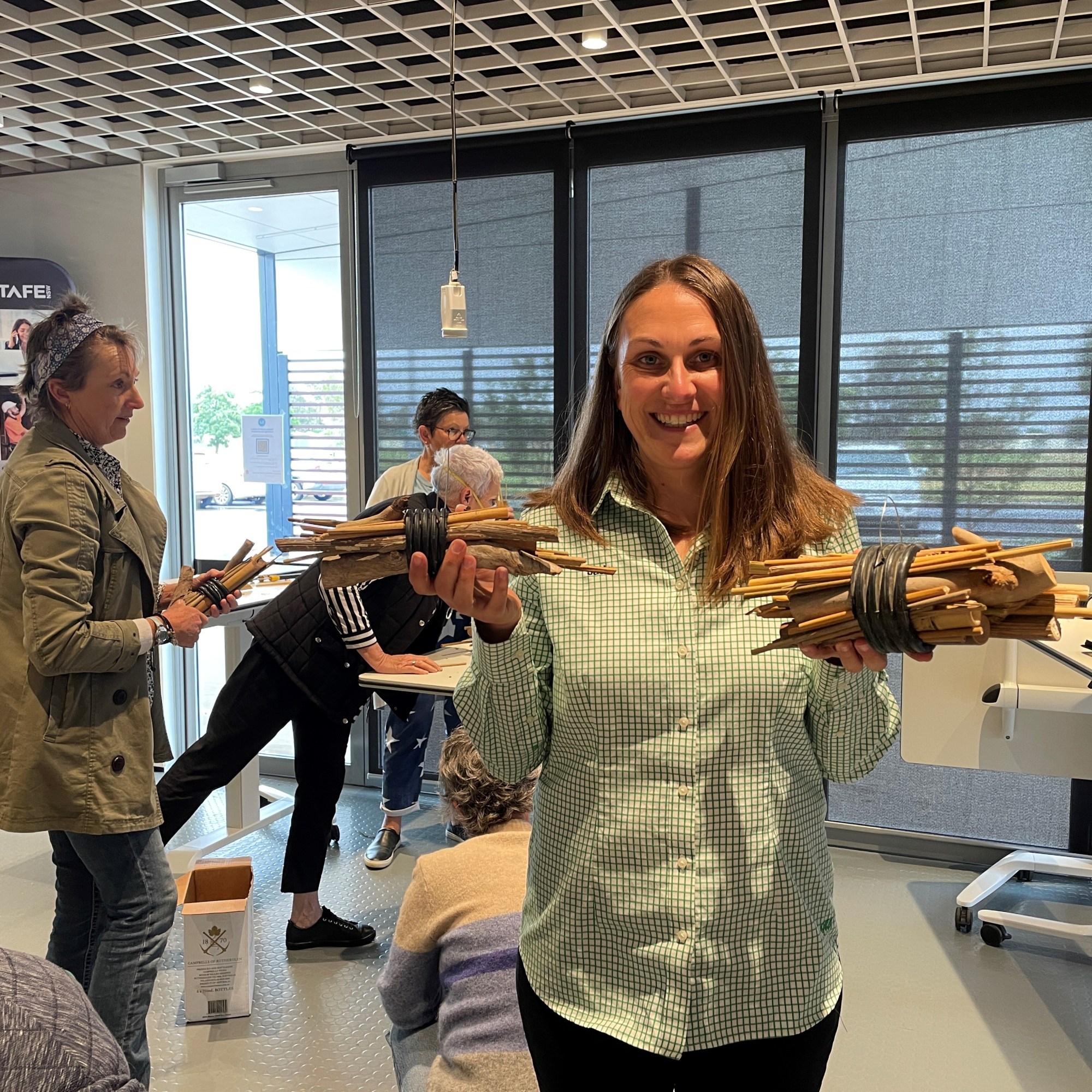Joanne’s presentation also included hands on learning with participants creating Bee hotel/Inns and continuing their ceramics (follow up from the first workshop).