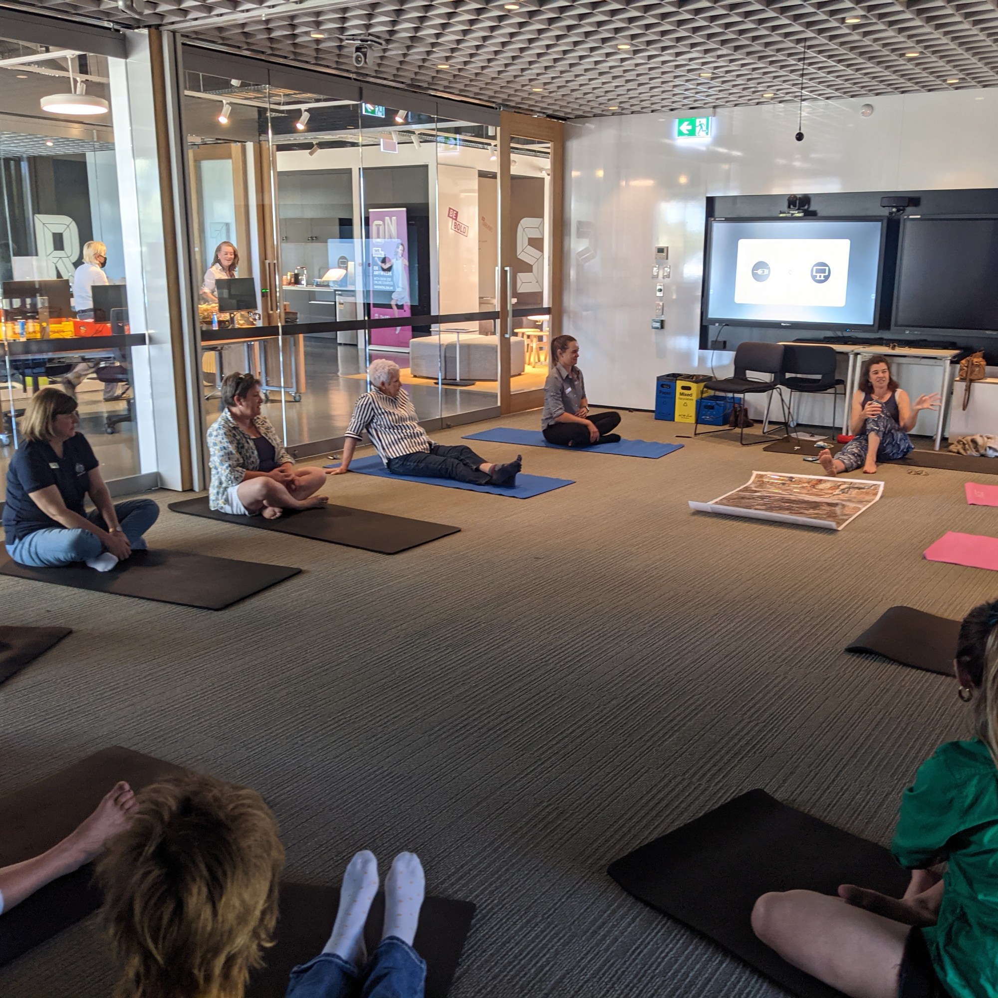 Local landholder Michelle Spence was the next speaker and she talked about the grazing operation that she runs at Lake Waljeers and Little Lake with her husband Dave. Michelle also showed clips of cattle mustering from the air and ran a gentle yoga class for the participants.