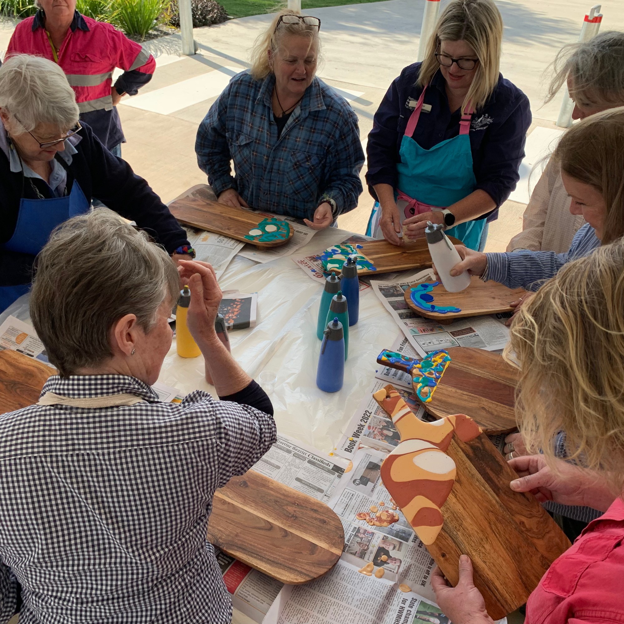 To wrap up the day everyone created their own acrylic poured paint wooden serving board.