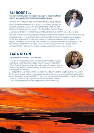 Renee Woods gave a brief summary of the benefits being seen with the river flows into Gayini wetlands and a Murrumbidgee water update.