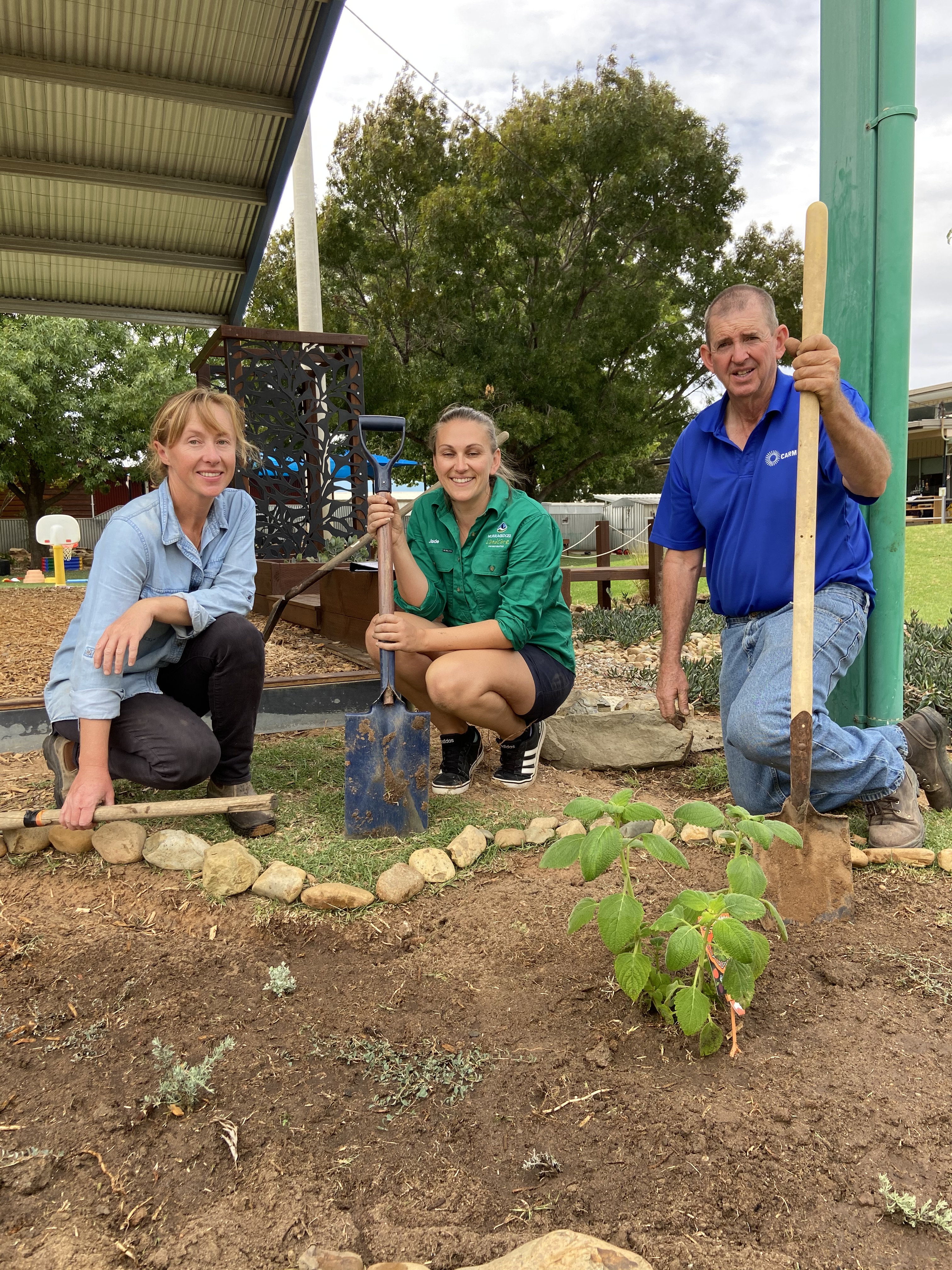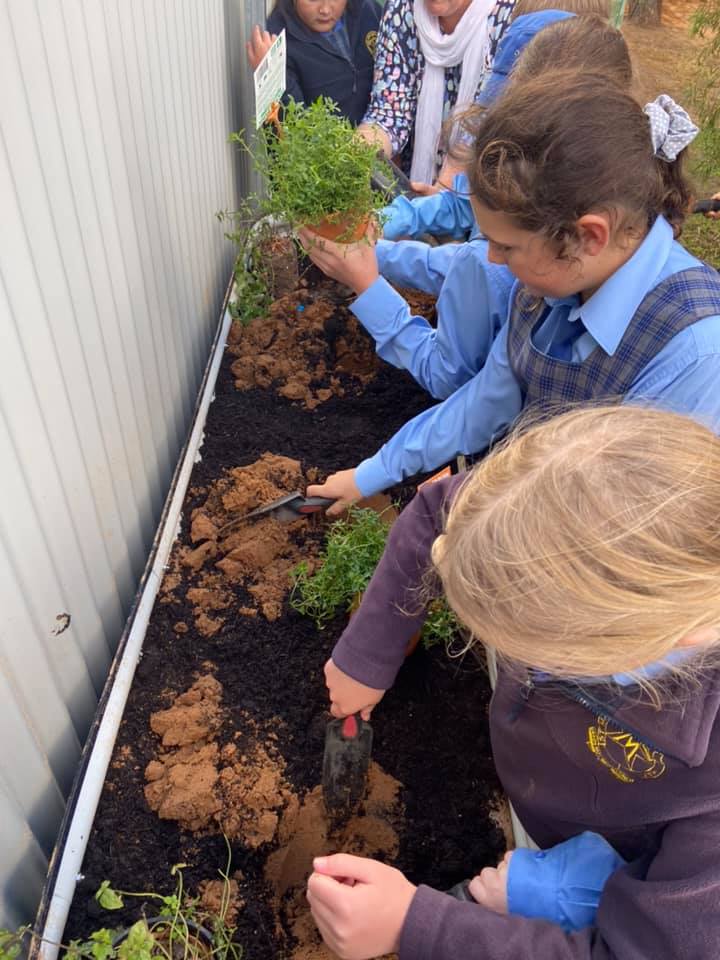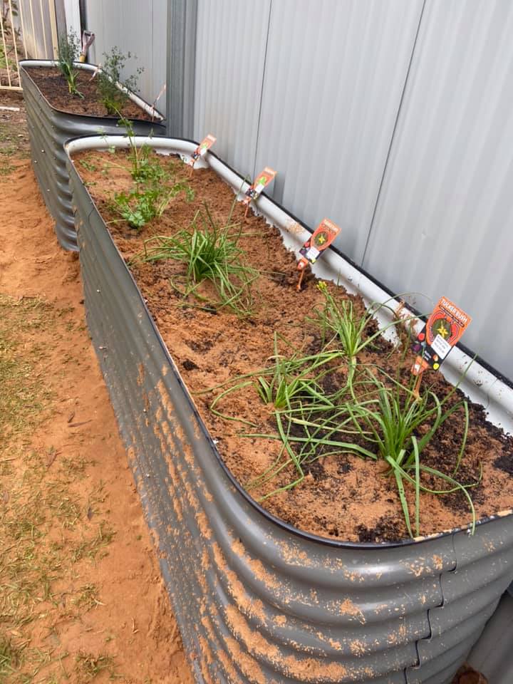Murrumbidgee Landcare sourced and donated the native plants: Creeping Saltbush, Ruby Saltbush, Thorny Saltbush, River Mint, Native Basil, Native Oregano, Davidsonia Johnsonii, Mityim Berries, Cinnamon Myrtle, Macadamia Tree, many more.