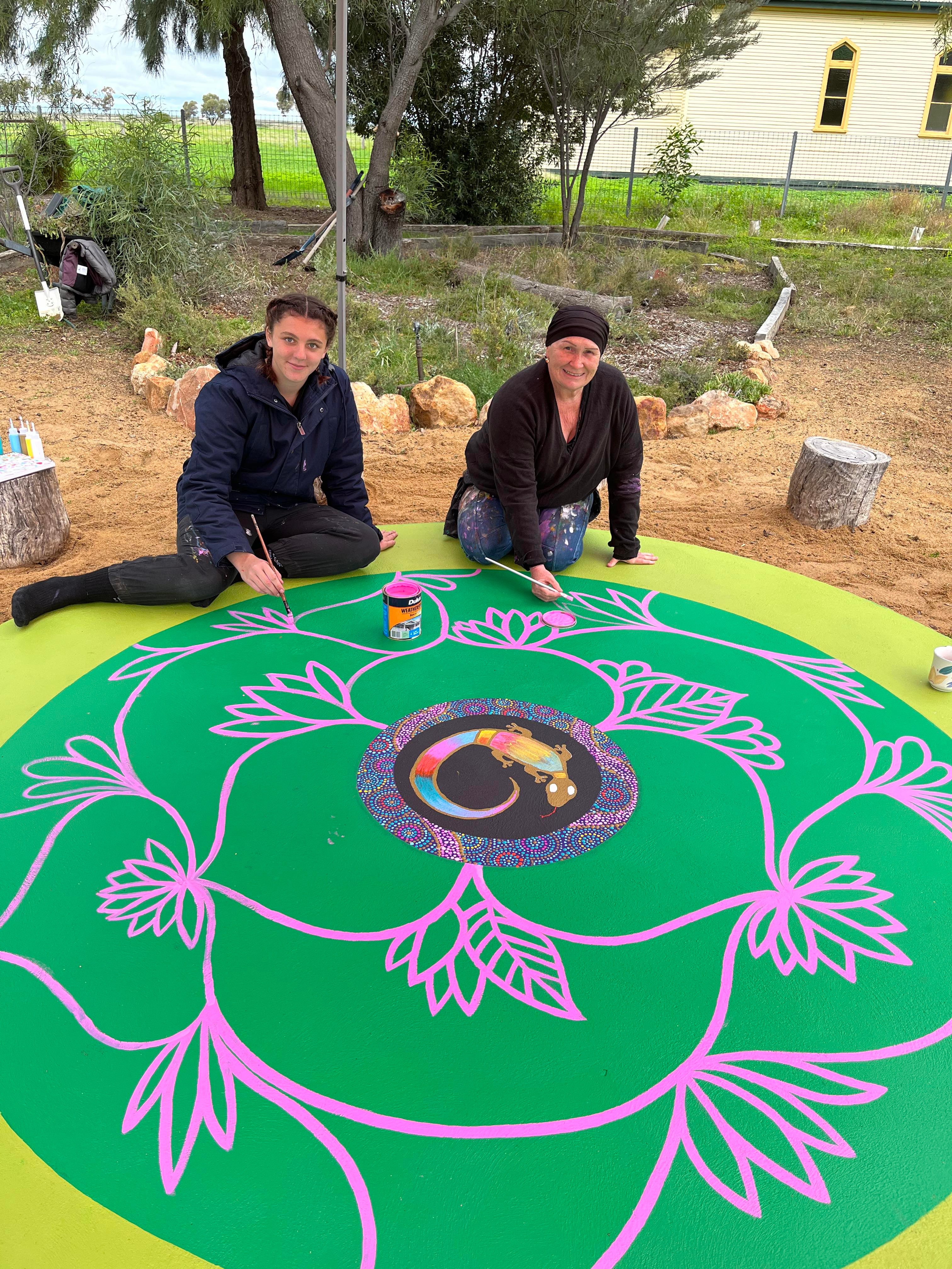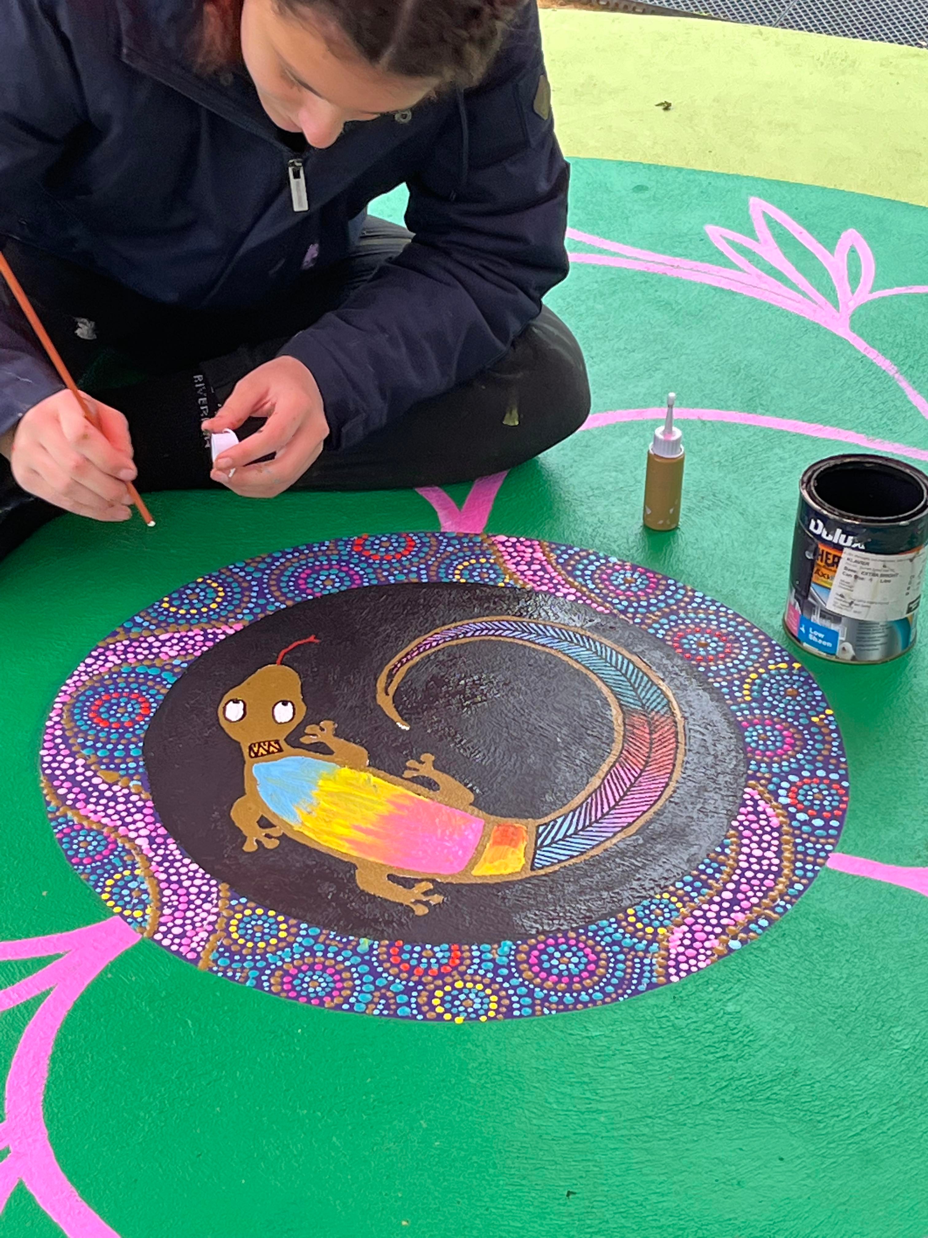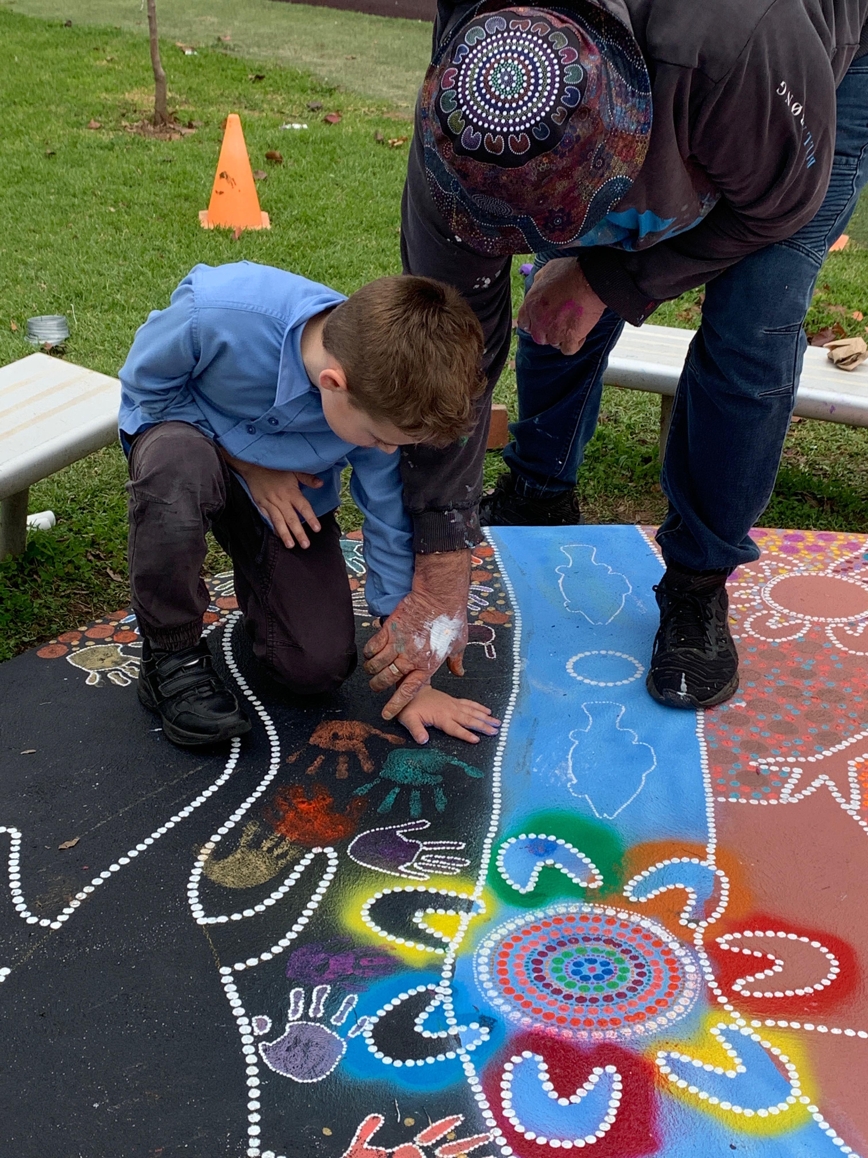 Wiradjuri Artist Owen Lyons spent the week painting a yarning circle with the students. This project has increased awareness, appreciation, and connection to Aboriginal culture and helped establish crucial long-term community connections.